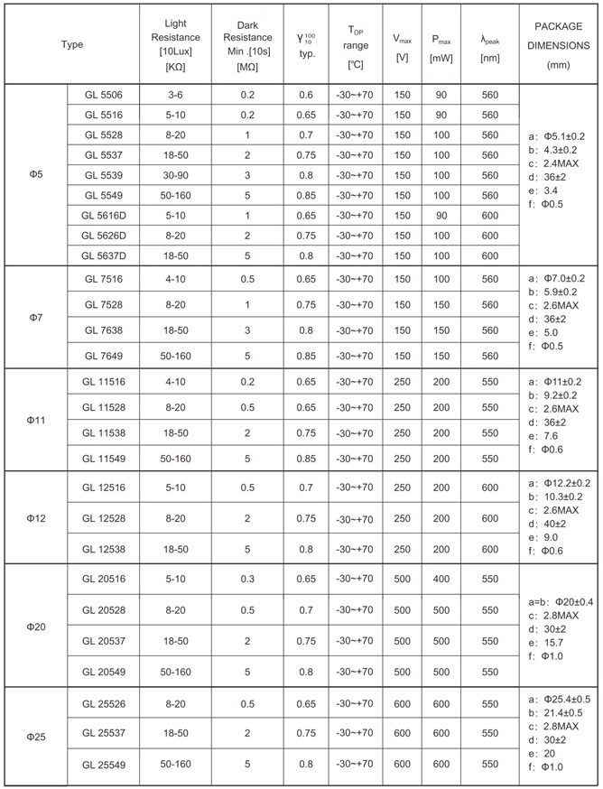 Resin Package Photocells Series1