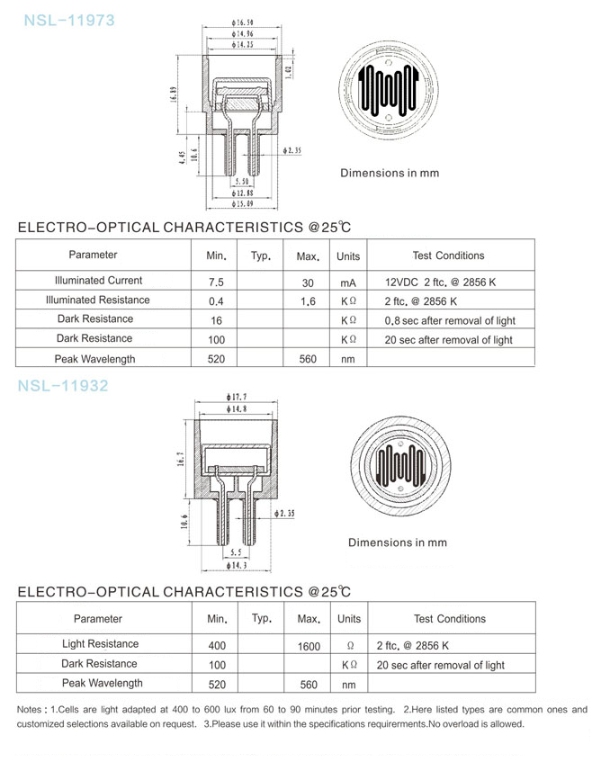 RoHS Compliance Photocells Series