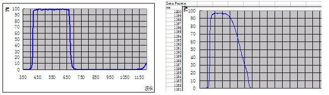 T=50% 短波長側(cè)390(+10,-15)nm 長波長側(cè)640(+15,-10)nm