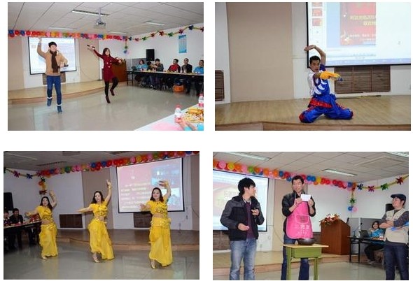 ????? 晚會現(xiàn)場雖然比較節(jié)儉,卻處處洋溢著喜氣洋洋的和諧氛圍。晚會內(nèi)容豐富多彩,包括歌曲、戲曲、舞蹈、小品、魔術(shù)、男女對唱、武術(shù)等十五個節(jié)目,給全體觀眾們帶來了一場美妙的視聽盛宴。一首合唱歌曲《猜》拉開本次晚會的帷幕;熱辣,奔放的西班牙之夜、印巴熱舞給大家?guī)У搅水悋橛?;根?jù)公司文化改編的小品《找工作》妙趣橫生,耐人尋味,迸發(fā)出積極向上的正能量;武術(shù)表演懸念頓生,豪氣沖天;歌曲《暗香》、《猜》演繹了情深意長、溫馨浪漫的真摯情感;詩朗誦《咱們工人有力量》,節(jié)目巧妙運用詩朗誦獨特的語言藝術(shù),謳歌公司發(fā)生的變化和取得的輝煌成就,歌頌了利達(dá)人的敬業(yè)精神、團隊合作精神,真情流露,感人肺腑,讓在座的觀眾贊嘆;小品《胡導(dǎo)》以其詼諧幽默的語言、滑稽搞笑的到位表演的藝術(shù)表現(xiàn)形式更是笑爆全場;更有郭富強表演的魔術(shù)和蔣麗的戲曲表演,讓我們領(lǐng)略了利達(dá)人別樣的激情與風(fēng)采。抽獎活動穿插期間,將聯(lián)歡會氣氛一次次推向高潮。