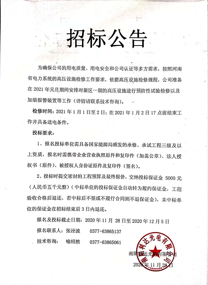 新廠區(qū)高壓配電設(shè)備預(yù)防性試驗招標(biāo)公告